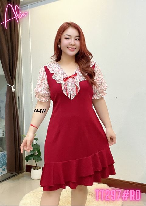PLUS SIZE DRESS|CHIFFON PATCHWORK PLEATED HEM DRESS #TT306RD #中大码雪纺拼接褶摆连身裙